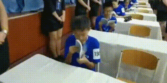 在网友发布的视频中,孩子们一人拿一本书飞快地翻动着,用“术语”说应当是飞快地“波动”着。眼睛似乎根本没有去看书,也根本看不过来,因为“波动”的速度快得令人发指。