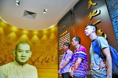 80后陶瓷研究专家刘金钟(右一)十分热爱佛山的武术和舞狮文化。图为刘金钟参观祖庙黄飞鸿博物馆。南方日报记者 戴嘉信 摄