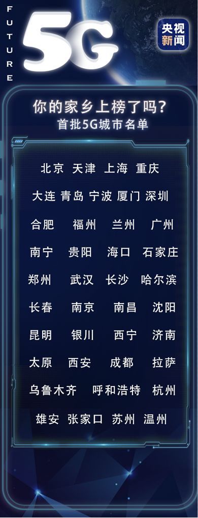 目前,北京和上海成为5G信号覆盖最多的城市,广州、杭州等城市也实现了5G网络连片覆盖。中国电信、中国移动、中国联通今年将分别在至少40个城市覆盖网络,并在部分城市推出5G服务。首批5G城市名单已公布,快来看看有没有你家吧!