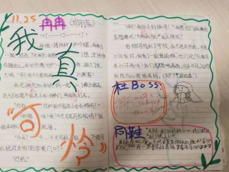 语文老师杜淑贵4年前让学生写合作日记,四五人一组每天轮流在同一本子上写,杜淑贵每天都会批改这些日记。不过评语不限于点评写作技巧,更多的是与学生进行日常对话。学生也可以在后面“跟帖”,在合作日记上学生亲切地称她为杜Boss、杜小姐、杜小妞