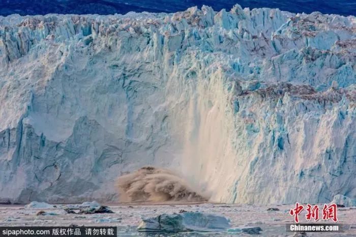 位于格陵兰岛西部,伊卢利萨特以北80公里处的的Eqi冰川。EqiEqi冰川有大量的冰山崩解,在某些情况下,这些崩解事件会引起海啸。图片来源:Sipaphoto 版权作品禁止转载