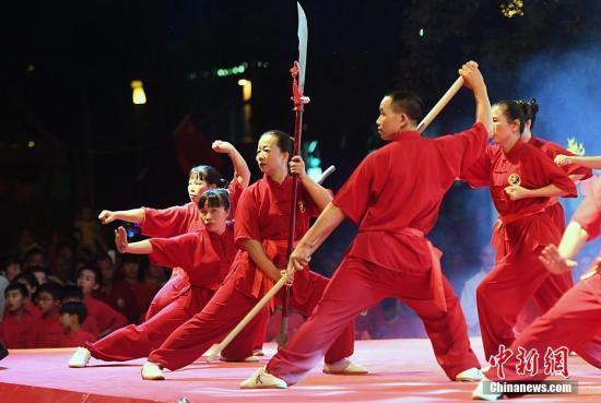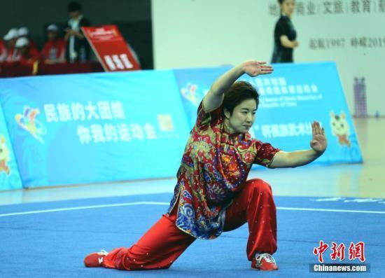 资料图:第十一届全国少数民族传统体育运动会民族武术项目在郑州奥林匹克体育中心体育馆进行。中新社记者 王中举 摄