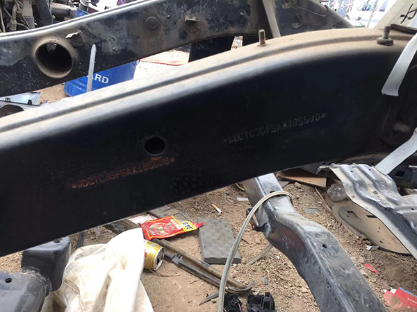 董先生表示,他取车发现,“小伤”的奔驰车经历了大修,更换了前桥和车架总成,并且重新打了车架号。而且原车车架总成上,还有一处私打的车架号,“是利星行的人在上面试打‘练手’”。