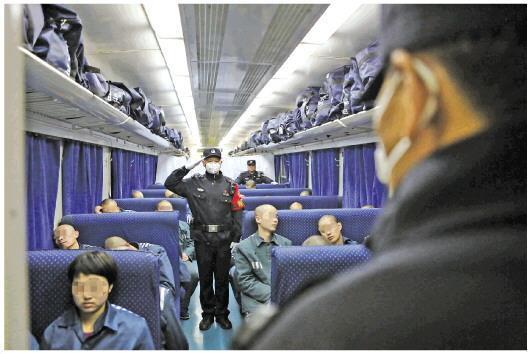 当晚6时,车队驶入北京西站,所有服刑人员在遣送民警和武警的人墙包围下通过公共地下通道依序走进车厢。民警搭起临时拉帘,将这节车厢一分为二,防止服刑人员“揣摩”警戒部署情况。随后,检票进站的广播声响起,普通乘客拎着大包小裹,直奔各自车厢,但他们没有察觉到,这趟旅途还有一节“流动监狱”。