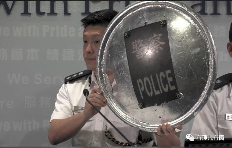 比如,当有黄媒在记者会现场指责警方“过度暴力”之时,谢振中举起了一个一线执法警员前一晚被暴徒攻击后所用的盾牌,并向现场所有记者反问“如果警员没有这个盾牌,将会遭受多大的伤害?” 现场鸦雀无声……