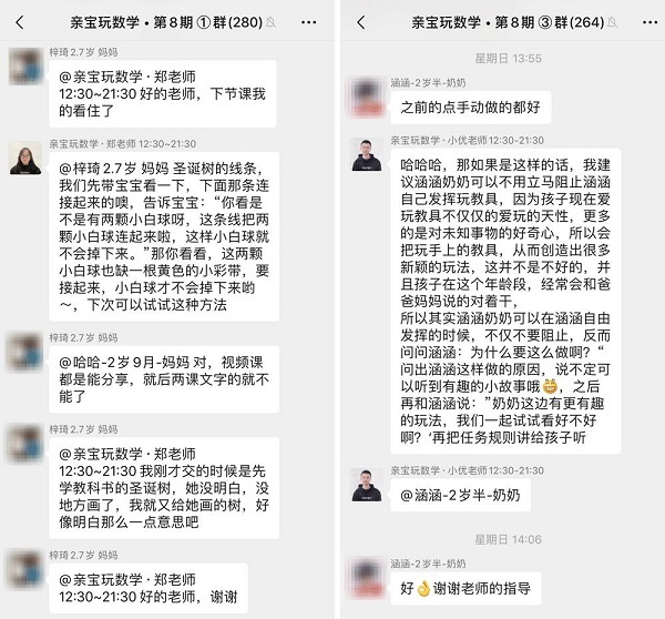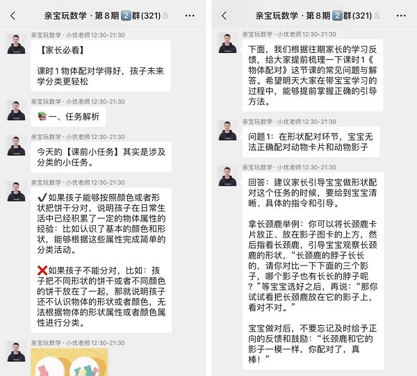 在课中,有老师操作示范,为家长和孩子提供正确的数学语言示范。