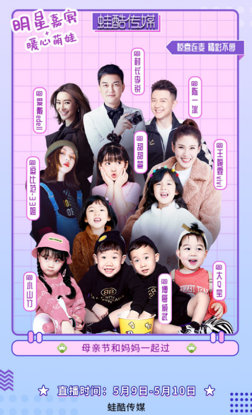 在话题的发酵下,5月9日、5月10日晚上,蛙酷文化传媒旗下萌娃博哥威武、大Q宝、小山竹、甜甜萱、逗比范-33姐开启了“和妈妈一起”专题直播。直播间内热闹非凡,网友们观摩这些小萌娃能够为妈妈做什么,直播过程中,他们成熟懂事地给妈妈拍大片、和妈妈一起锻炼、给妈妈晒出最潮穿搭,许多网友留言互动“好想要个这样的孩子”、“这才是母亲节该有的样子!”、“之前以为视频中都是演出来的,没想到他们在直播中也能这么有爱有趣”。