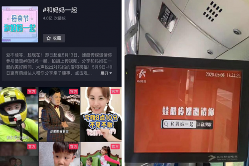 “和妈妈一起”抖音话题除了在平台中的展示,还得到了全媒体的共同推广,地铁公交的移动电视、电台主播的全城呼吁、湖南经视的新闻报道……体现出了媒体之间对于亲情活动的融合性,也代表着抖音的传播形式得到了大众的认可。活动让2000多位达人积极参与进来,风格迥异的视频,从各个维度展示了对母亲的陪伴,截至发稿日,蛙酷传媒打造的“和妈妈一起”抖音话题已经突破4亿次播放。