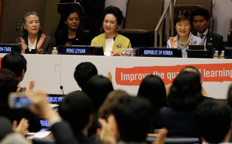彭丽媛表示,多年前,他的父亲通过他的努力改变了他所在的小村庄。今天大家携手努力就能改变世界。彭丽媛表示,希望所有的孩子特别是女孩都接受良好的教育,这就是她的中国梦。她坚信,总有一天,教育第一的梦想将不会是一个梦想,将会成为全世界共享的美好现实。