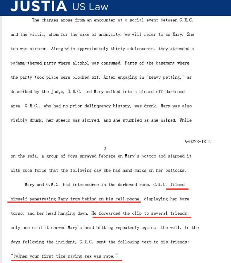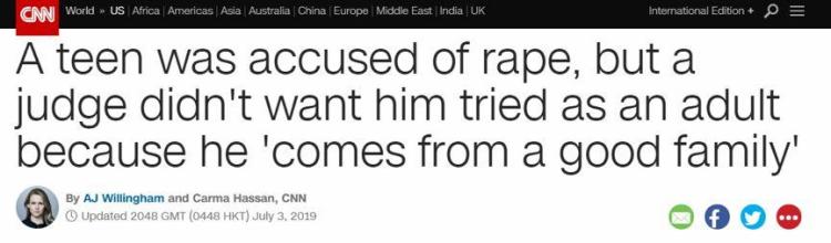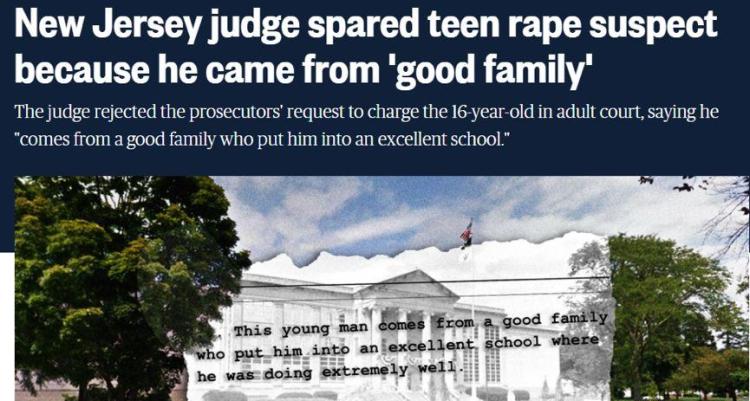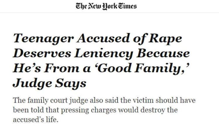 因为他“来自一个好家庭”、“在一个好学校读书”,“学校成绩优秀”,“他还是个孩子”,所以他的强奸罪行就可以被轻饶?!