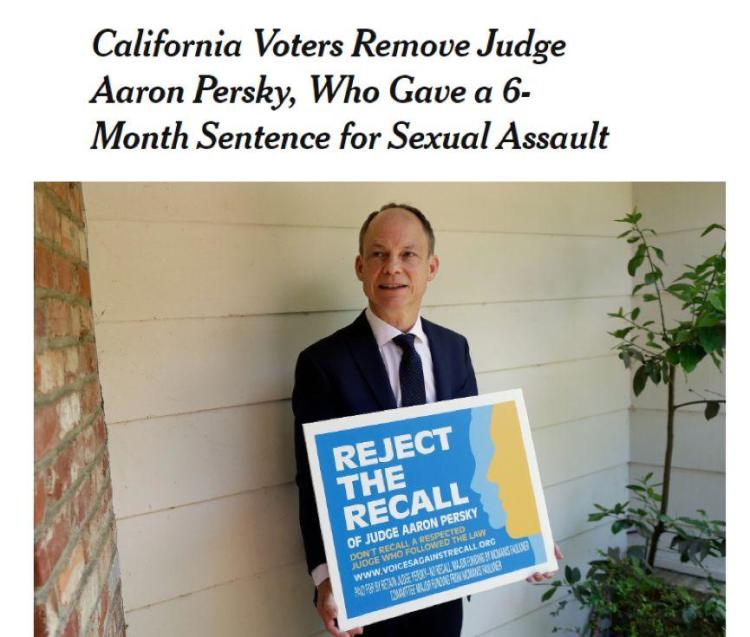当然,这一判决也同样引起了美国社会强烈的愤慨。结果,那个给他如此“宽松刑期”的法官被当地民众投票免了职,并因此耻辱地成为了当地80多年来第一个被民众投票免职的法官。