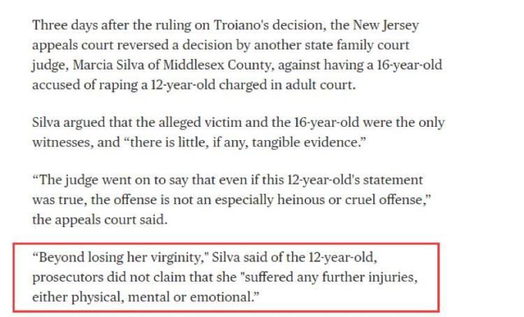 不过,这并不是美国近些年唯一一名差点被姑息的强奸犯。比如多家美国媒体的报道就指出,美国有一名强奸了12岁女童的16岁强奸犯,去年也被另一名法官打算以“少年”的身份从轻处罚,理由竟是除了失去“处女”,检方并没有证据显示女孩还受到了其他伤害……