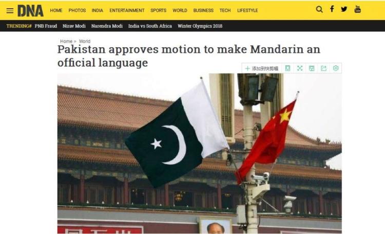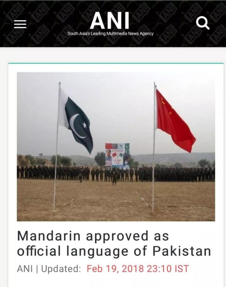《今日印度》等多家媒体都报道了巴基斯坦将中文设为官方语言的消息。