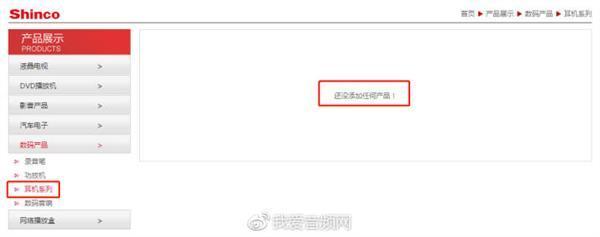 通过登录Shinco的官网查询,在耳机系列一栏,得到的查询结果是:还没添加任何产品!