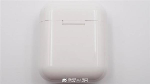 包装盒的正面是AirPods的产品图片,这部分的设计跟原装包装盒类似,只是耳机上的孔位做了些许修改。